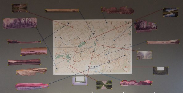 My final piece turned out a lot better than I had originally envisioned, This is partly due to the fact I managed to source a large grey pin board to mount the entire piece too. I started by mounting the custom map to the board. Then each time I created a photo merge or video edit I would print it out then mount it to the board near the location of the shoot. Then I used blue string for photo merges and red for anything areal.